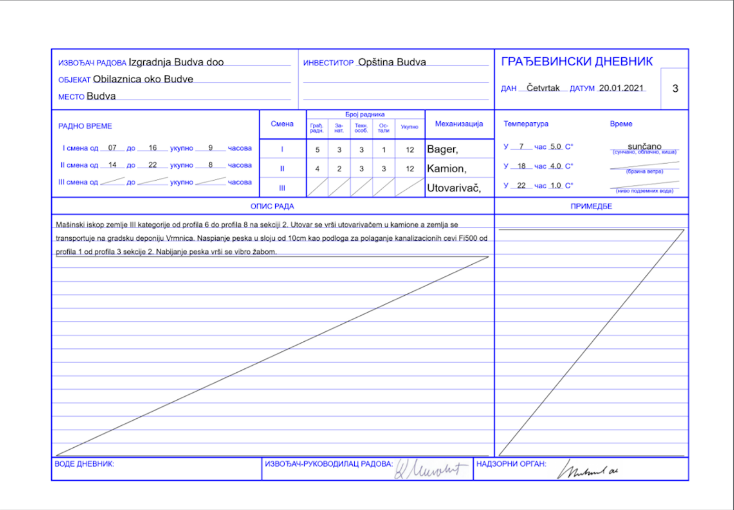 Kontrola da se jedan od najvažnijih dokumenata na projektu upisuje svakodnevno u skladu sa zakonom. Pratite sve izmene u realnom vremenu.
