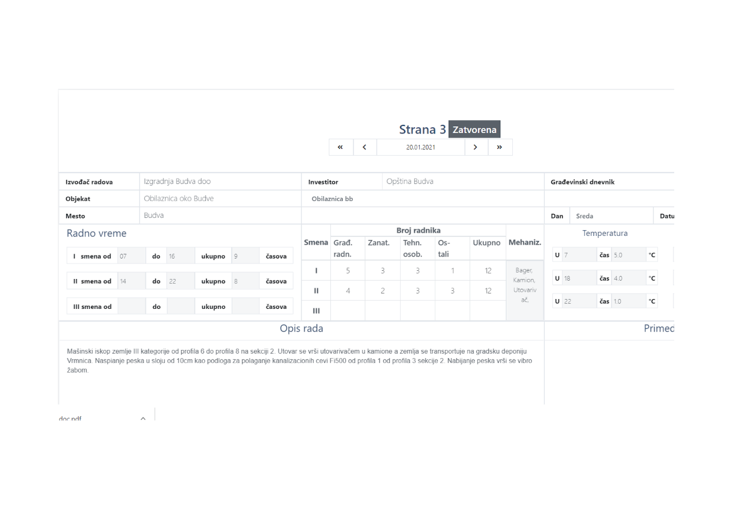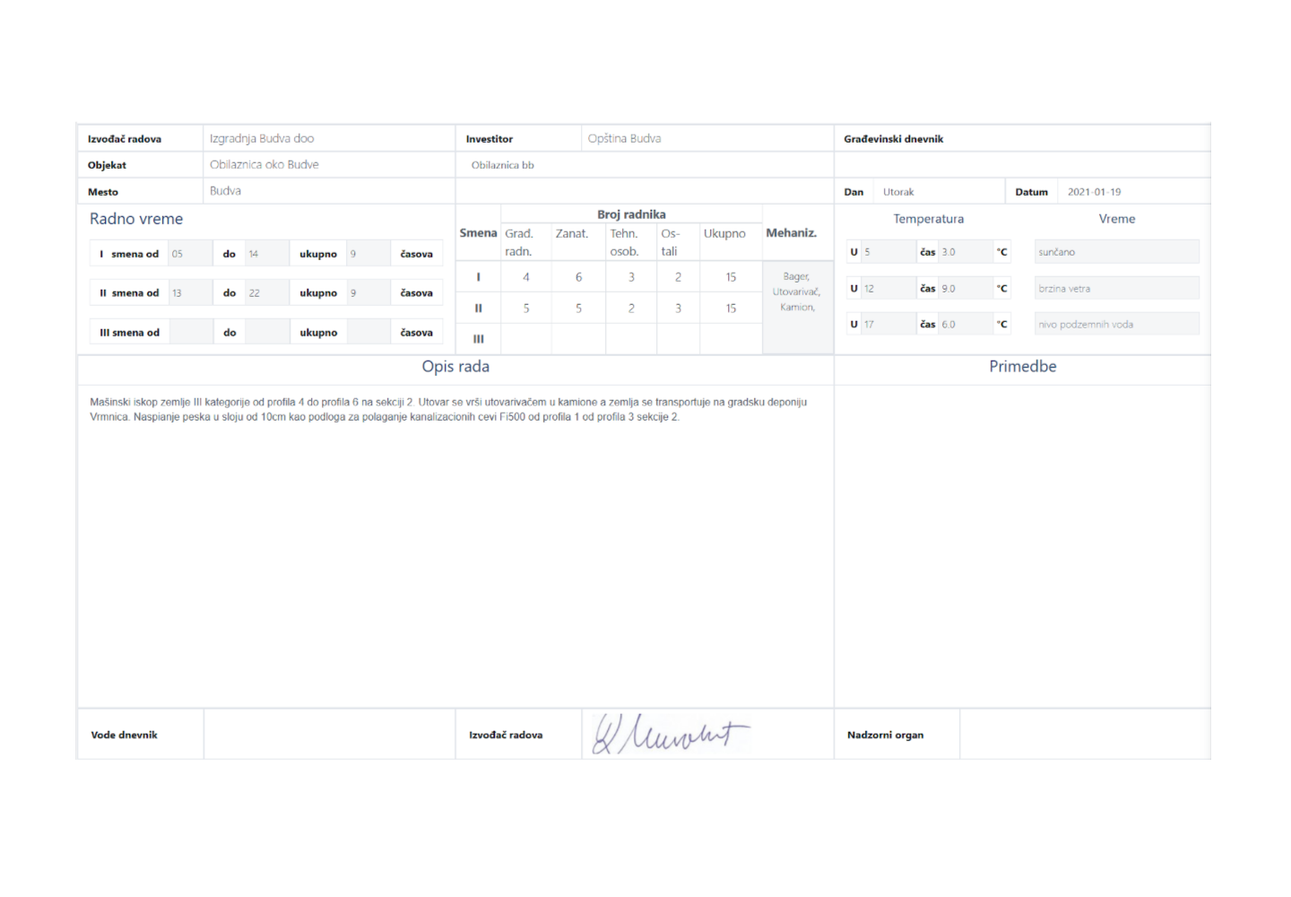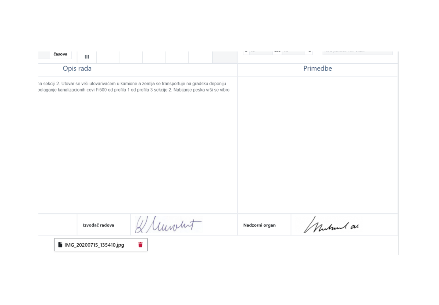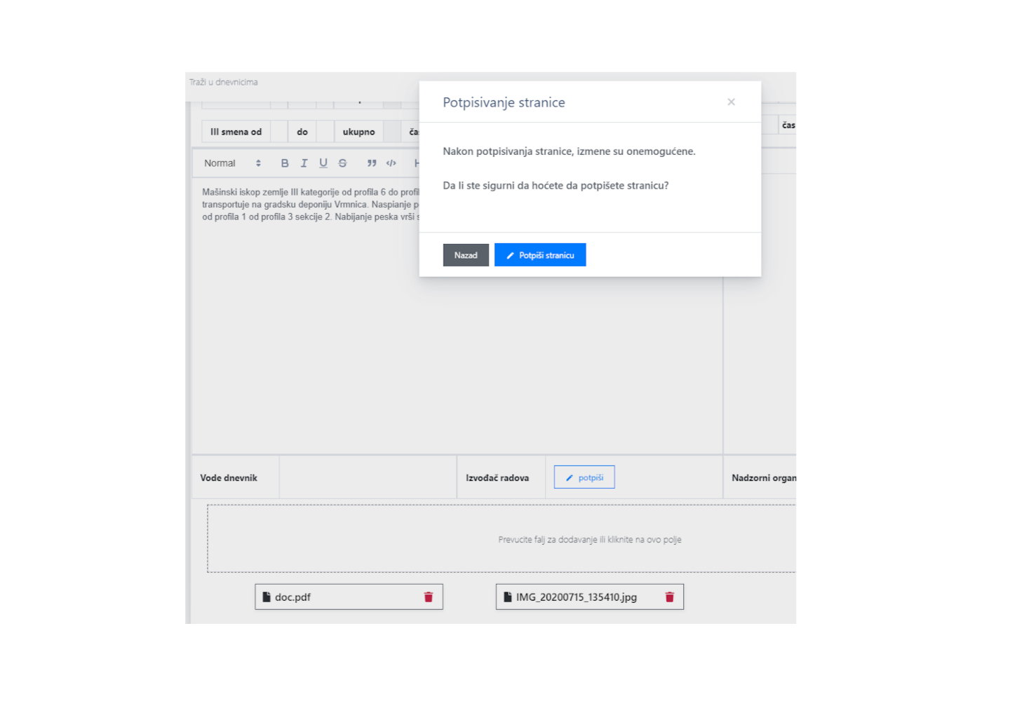 Potpisivanje stranice građevinskog dnevnika jednim klikom.