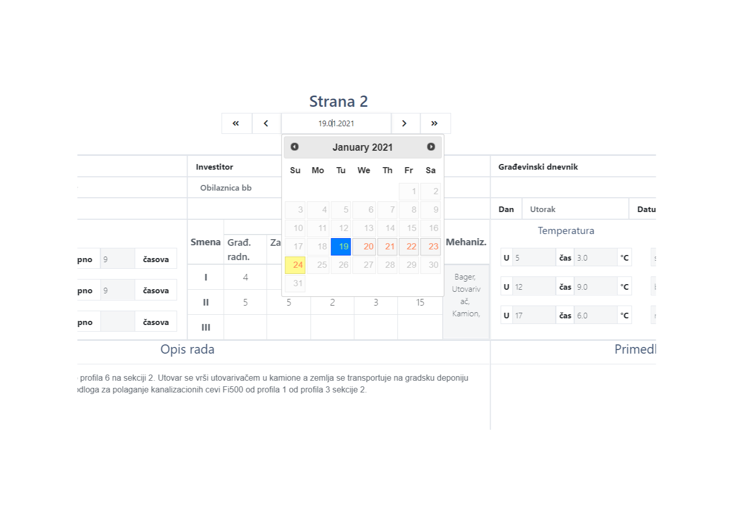 Automatsko otvaranje nove stranice dnevnika sa svakim novim danom na projektu.