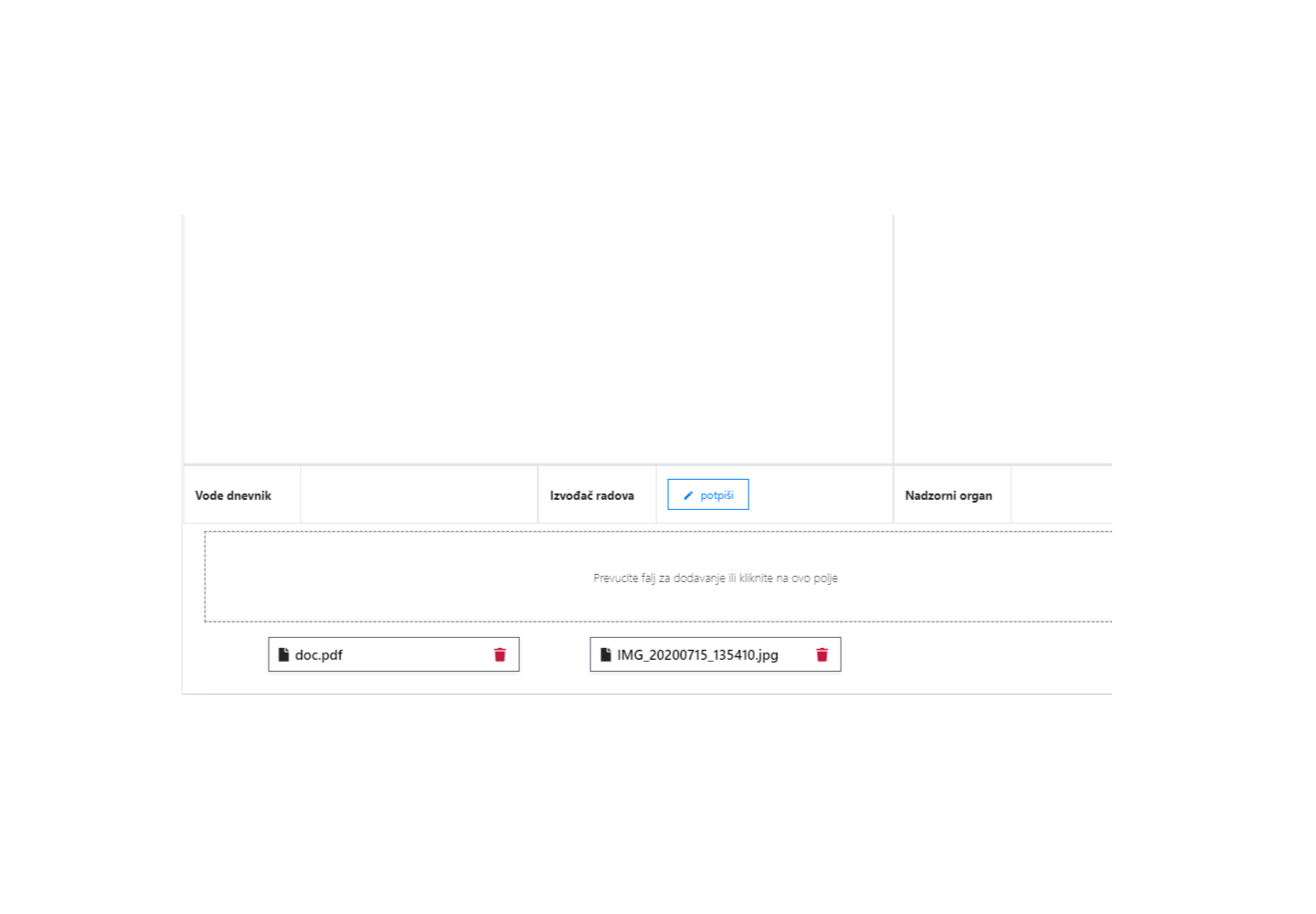 Jednostavno prilaganje dodatne dokumentacije uz stranice građevinskog dnevnika.